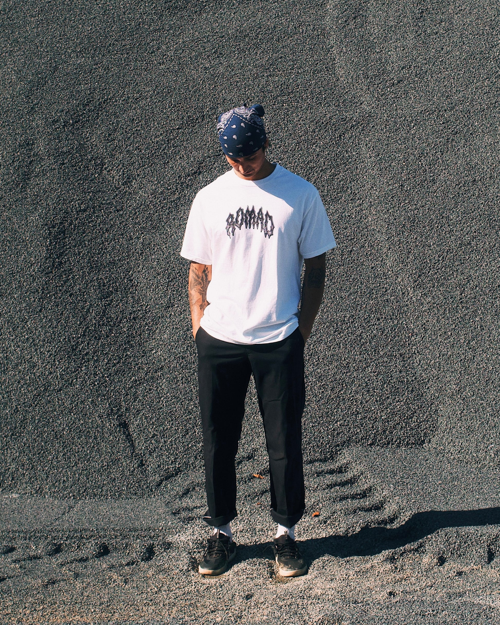Bold, distorted logo across the chest—an ode to skate magazines, garage culture, and long days chasing waves or winding up dirt roads.