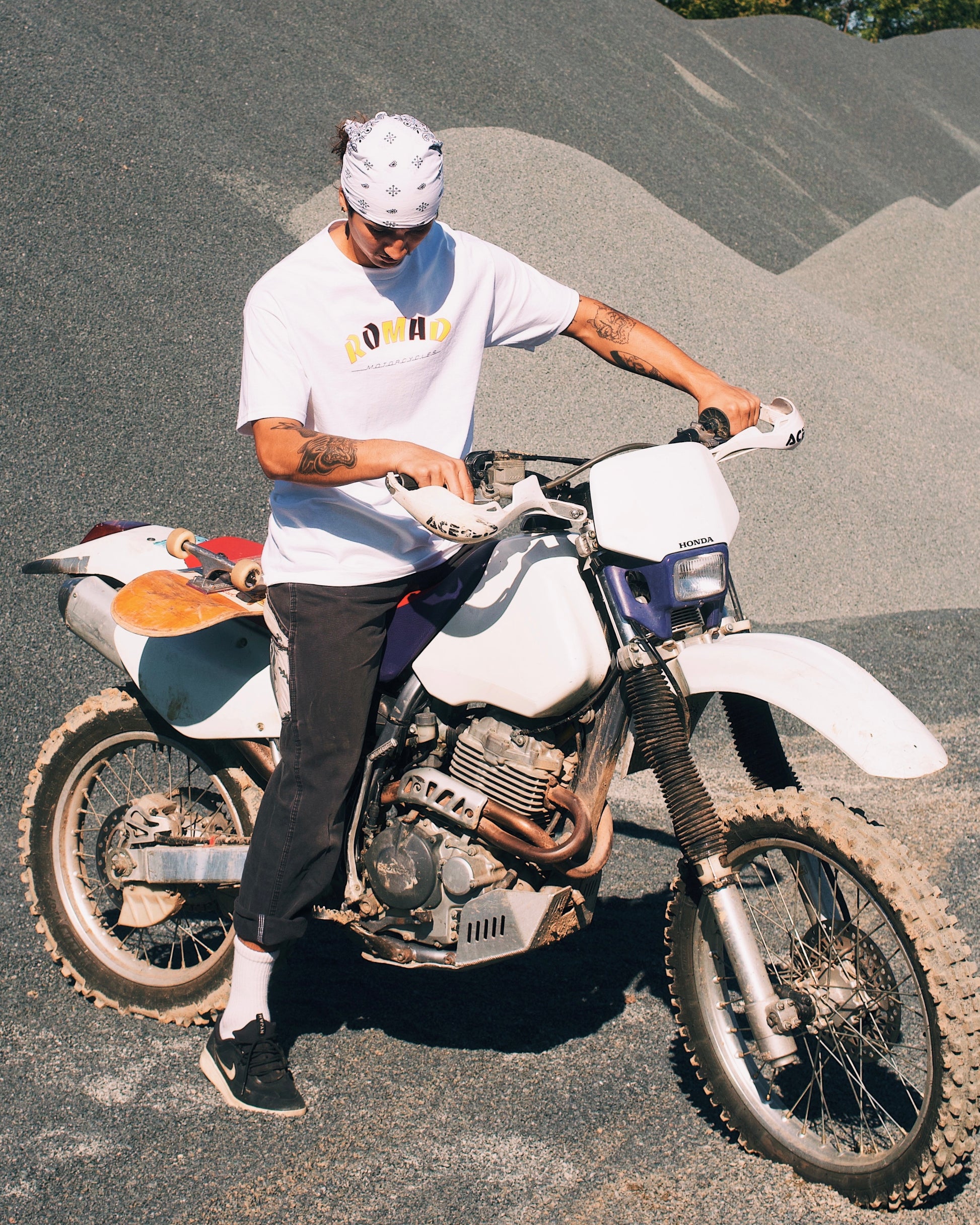 Skate magazine-inspired flames meet vintage moto grit. Romad Motorcycles is open for business.
